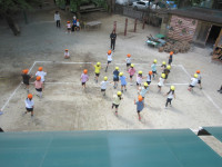 NT(ネイティブティーチャー)が子どもたちと一緒に遊び、英語に親しめるようにします。